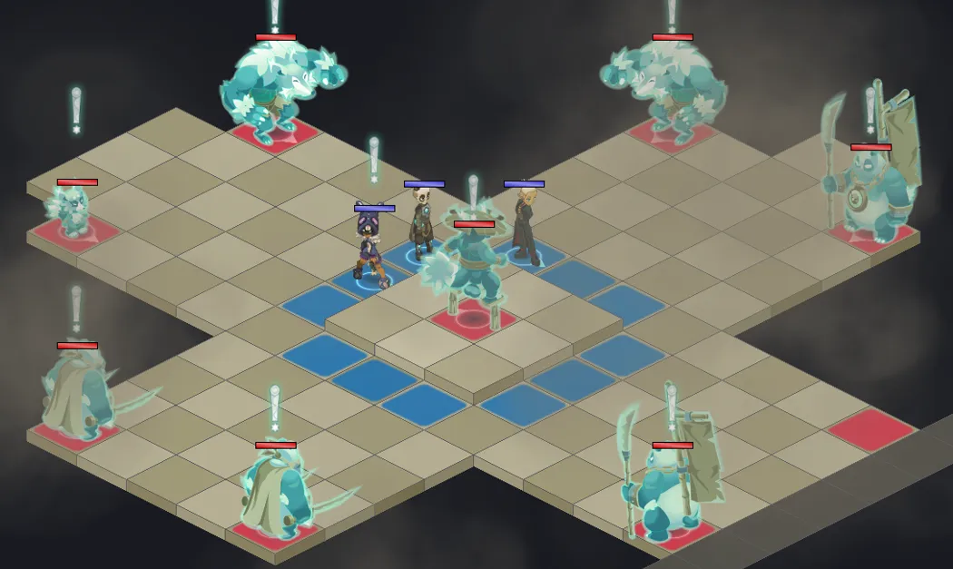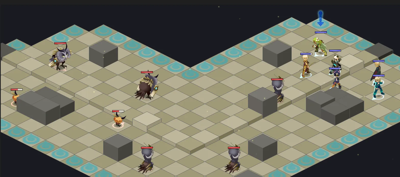 Vous disposez pendant le combat sur tous vos perso d’un sort spécial qui vous permet de vous téléporter jusqu’à 4PO pour 1PA afin de vous déplacez de blocs en blocs si besoin : son utilisation est limité à 4 fois par tour par équipe : utilisez-le principalement sur vos personnages qui n’ont pas de sort de téléportation