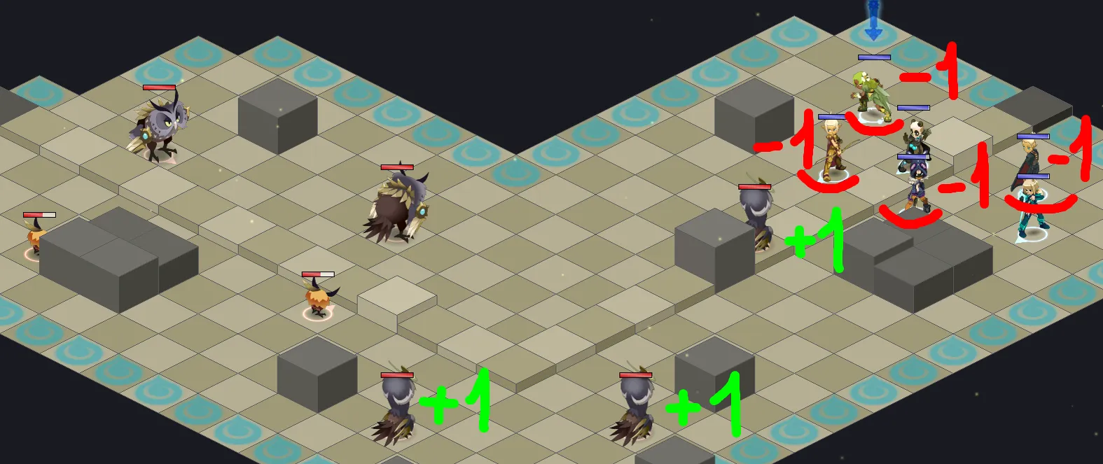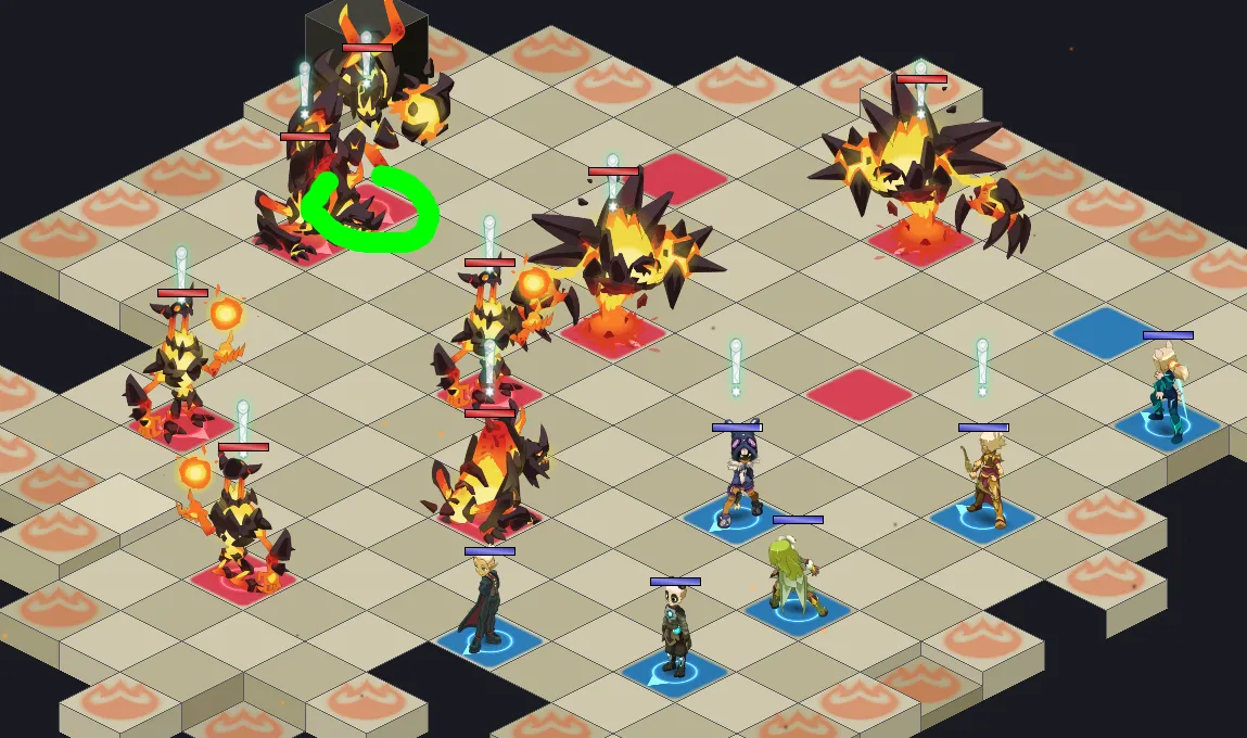Le plus gros danger ici va être les Mages à qui vous allez offrir de sacrés belles zones, essayez d’isoler vos personnages dégâts et de disperser le plus rapidement possible tous vos personnages avec vos premiers personnages qui jouent afin d’éviter de mourir d’attaques de zones boostées et répétées des Mages